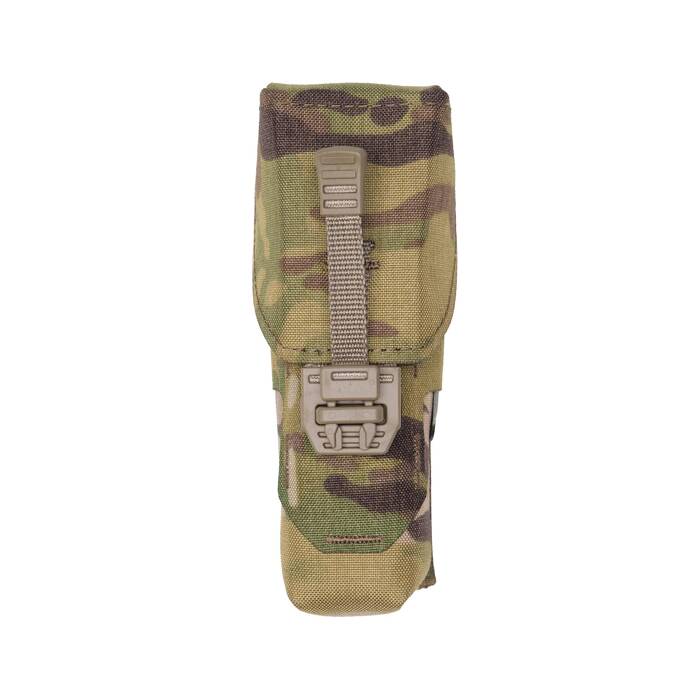 Flashbang grenade fits securely with Velcro and QR buckle closure, external webbing retains the spoon in the user’s desired orientation and the Full Flap lid protects the pull ring and pin.